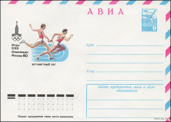 Художественный маркированный конверт СССР N 78-688 (26.12.1978) АВИА Игры XXII Олимпиады Москва-80 Эстафетный бег