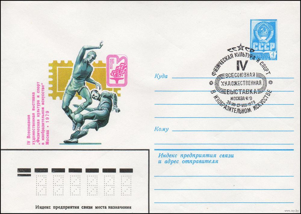 Художественный маркированный конверт СССР N 79-370(N) (04.07.1979) IV Всесоюзная художественная выставка "Физическая культура и спорт в изобразительном искусстве" Москва 1979