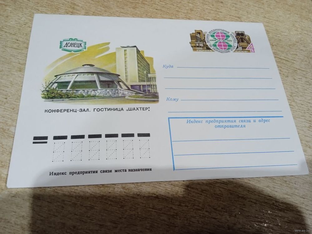 Художественный маркированный конверт СССР N 79-76 (13.02.1979) Донецк Конференц-зал. Гостиница "Шахтер". Восьмой Международный конгресс по обогащению углей Донецк 1979