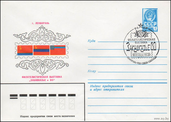 Художественный маркированный конверт СССР N 80-141(N) (04.03.1980) Филателистическая выставка "Закавказье-80" г. Ленкорань