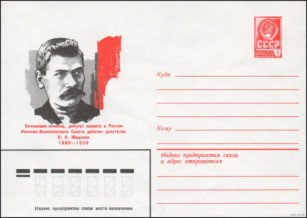 Художественный маркированный конверт СССР N 80-151 (05.03.1980) Большевик-ленинец, депутат первого в России Иваново-Вознесенского Совета рабочих депутатов Н.А. Жиделев 1880-1950