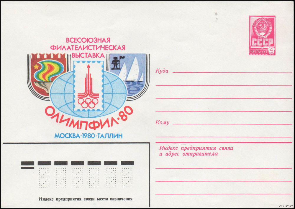 Художественный маркированный конверт СССР N 80-249 (22.04.1980) Всесоюзная филателистическая выставка Олимпфил-80 Москва 1980 Таллин