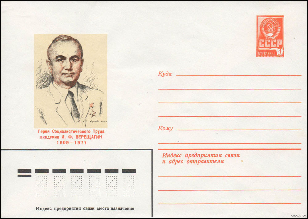 Художественный маркированный конверт СССР N 80-287 (13.05.1980) Герой Социалистического Труда академик Л.Ф. Верещагин 1909-1977