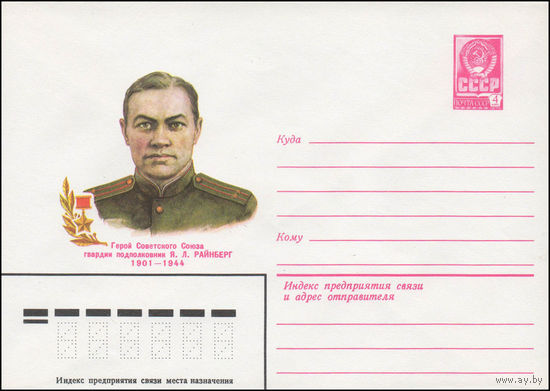 Художественный маркированный конверт СССР N 80-375 (25.06.1980) Герой Советского Союза гвардии подполковник Я.Л. Райнберг 1901-1944
