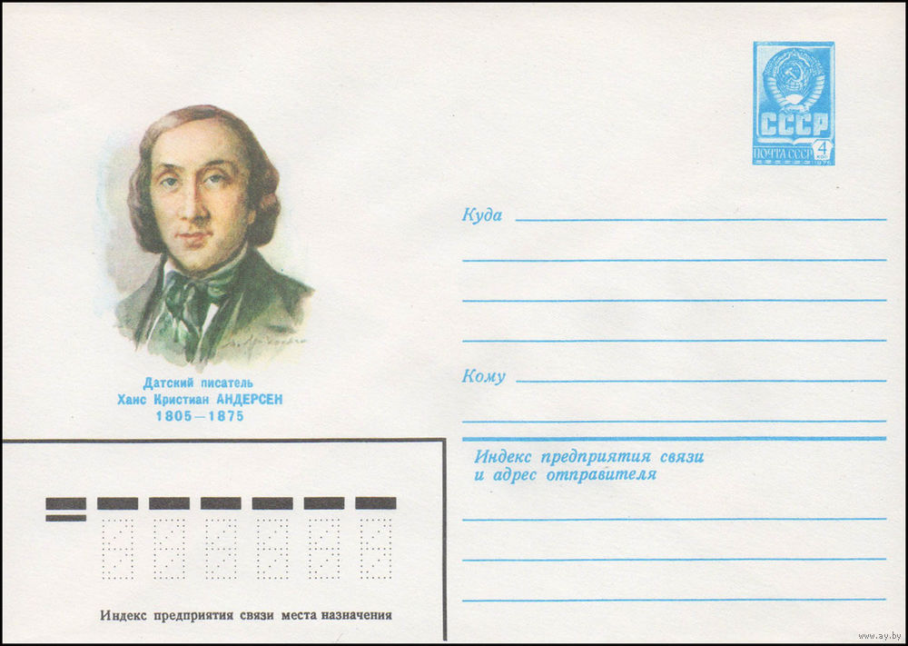 Художественный маркированный конверт СССР N 80-590 (17.10.1980) Датский писатель Ханс Кристиан Андерсен 1805-1875
