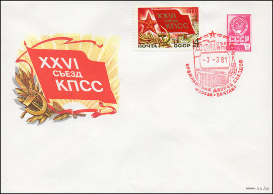 Художественный маркированный конверт СССР N 80-662(N) (03.12.1980) XXVI съезд КПСС