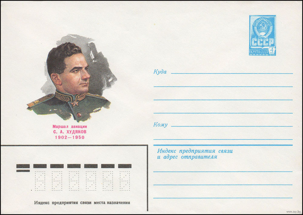 Художественный маркированный конверт СССР N 81-542 (26.11.1981) Маршал авиации С.А. Худяков 1902-1950