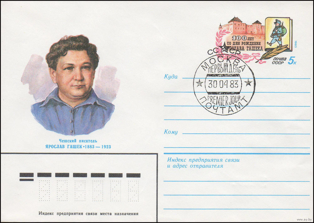 Художественный маркированный конверт СССР N 82-631(N) (23.12.1982) Чешский писатель Ярослав Гашек 1883-1923