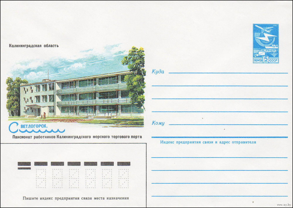 Художественный маркированный конверт СССР N 84-185 (23.04.1984) Калининградская область Светлогорск. Пансионат работников Калининградского морского торгового порта