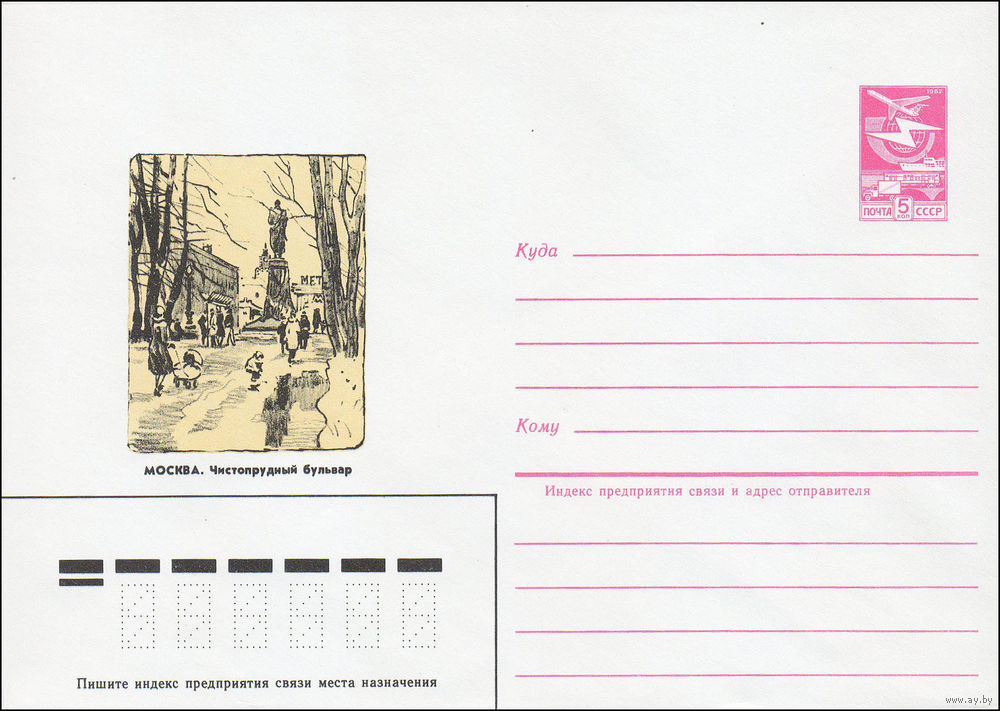 Художественный маркированный конверт СССР N 84-226 (24.05.1984) Москва. Чистопрудный бульвар