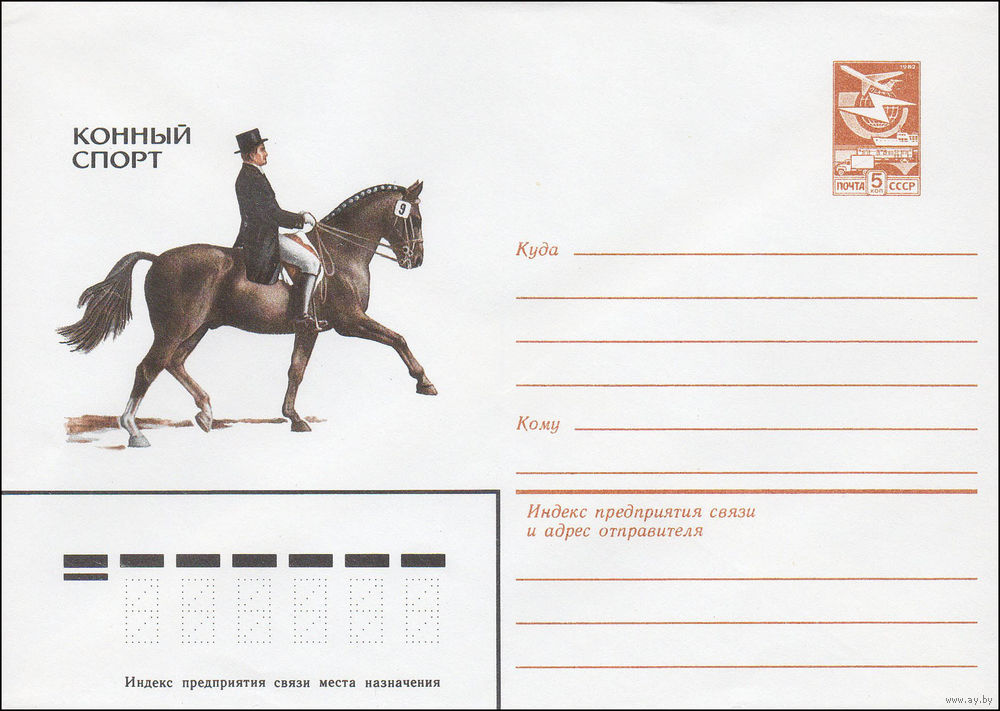 Художественный маркированный конверт СССР N 84-288 (26.06.1984) Конный спорт