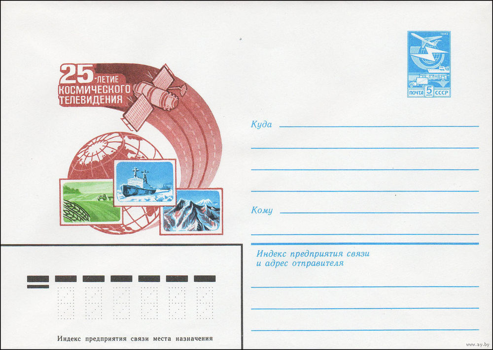 Художественный маркированный конверт СССР N 84-312 (10.07.1984) 25-летие космического телевидения