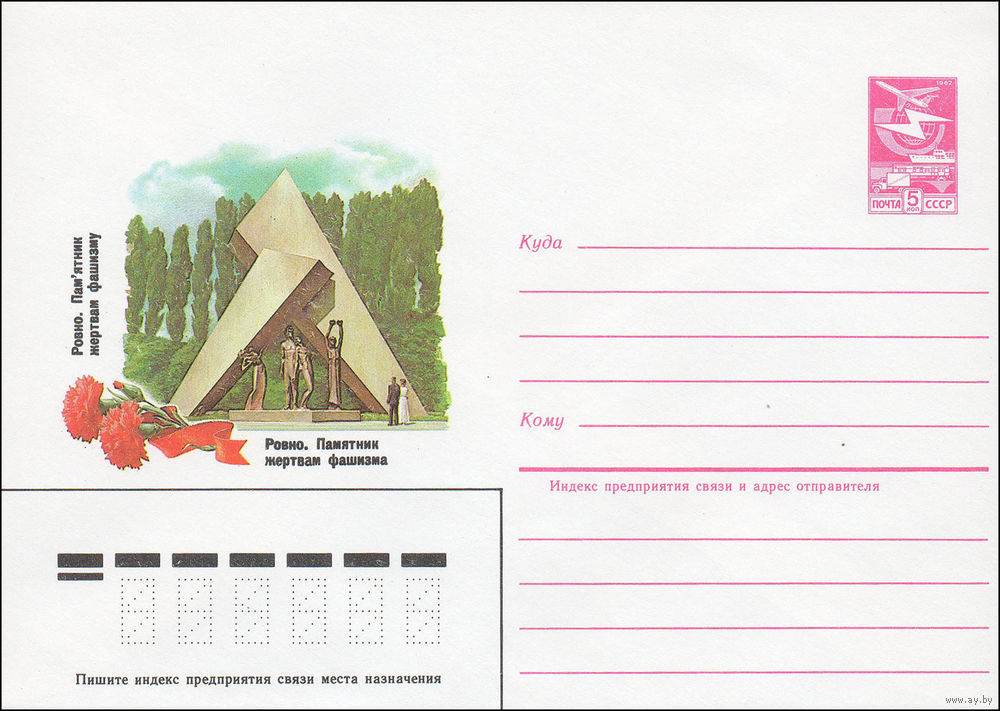 Художественный маркированный конверт СССР N 84-371 (21.08.1984) Ровно. Памятник жертвам фашизма
