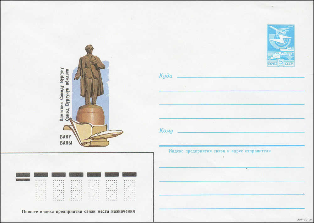 Художественный маркированный конверт СССР N 84-477 (26.10.1984) Баку Памятник Самеду Вургуну