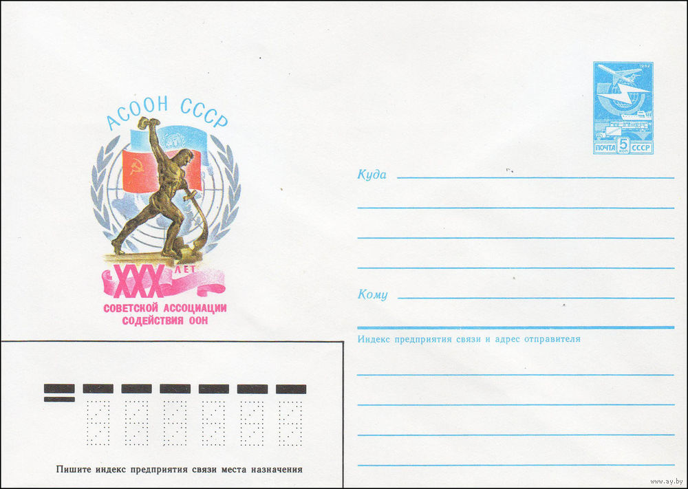 Художественный маркированный конверт СССР N 85-520 (25.10.1985) АСООН СССР XXX лет Советской ассоциации содействия ООН