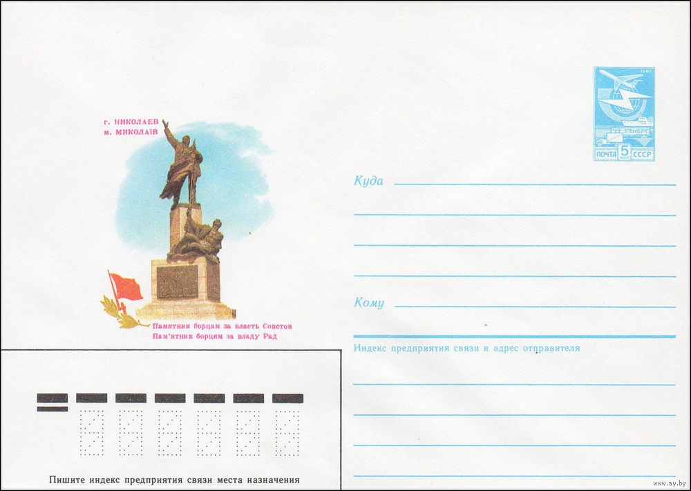 Художественный маркированный конверт СССР N 85-526 (31.10.1985) г. Николаев Памятник борцам за власть Советов