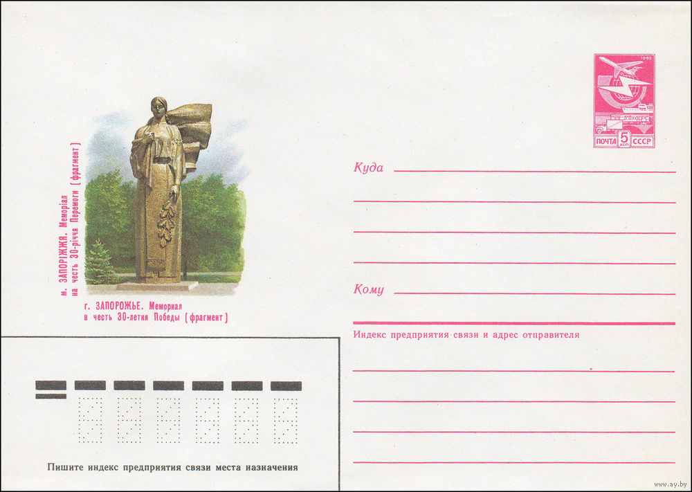 Художественный маркированный конверт СССР N 85-573 (29.11.1985) г. Запорожье. Мемориал в честь 30-летия Победы (фрагмент)