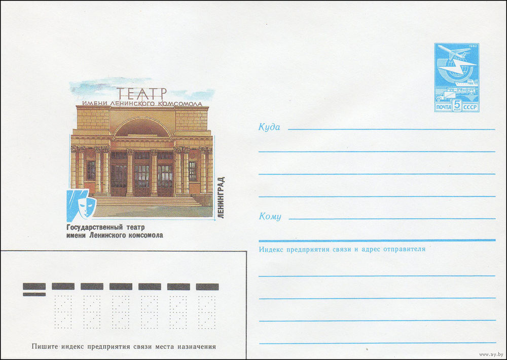 Художественный маркированный конверт СССР N 86-118 (24.03.1986) Ленинград Государственный театр имени Ленинского комсомола
