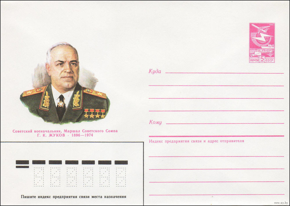Художественный маркированный конверт СССР N 86-504 (05.11.1986) Советский военачальник, Маршал Советского Союза Г. К. Жуков 1896-1974