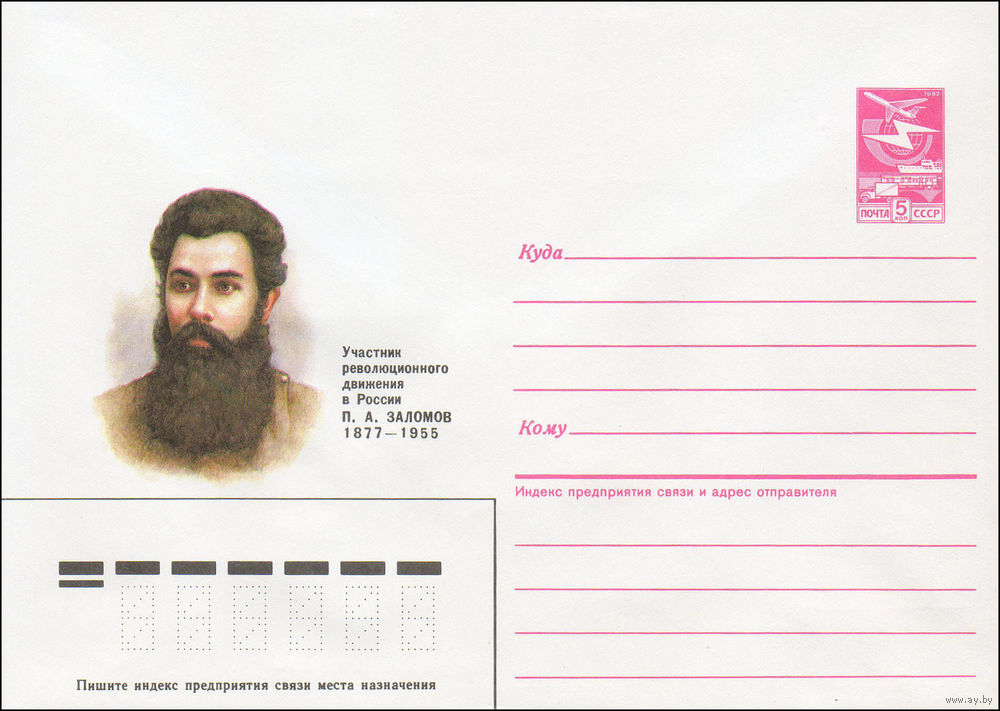Художественный маркированный конверт СССР N 86-591 (15.12.1986) Участник революционного движения в России П. А. Заломов 1877-1955