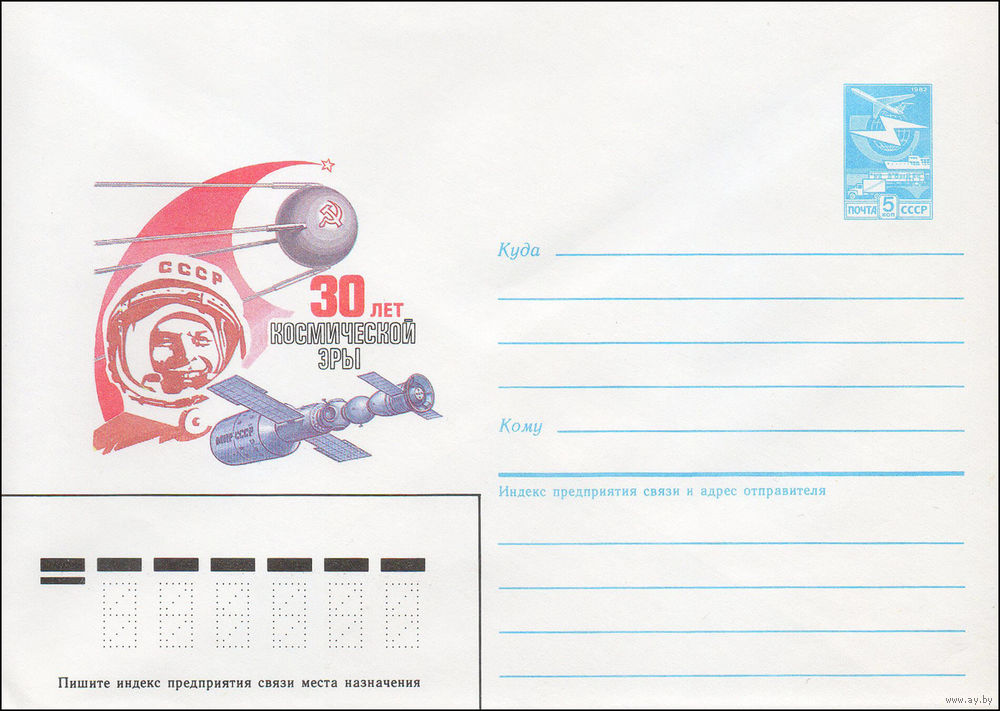 Художественный маркированный конверт СССР N 87-156 (27.03.1987) 30 лет космической эры