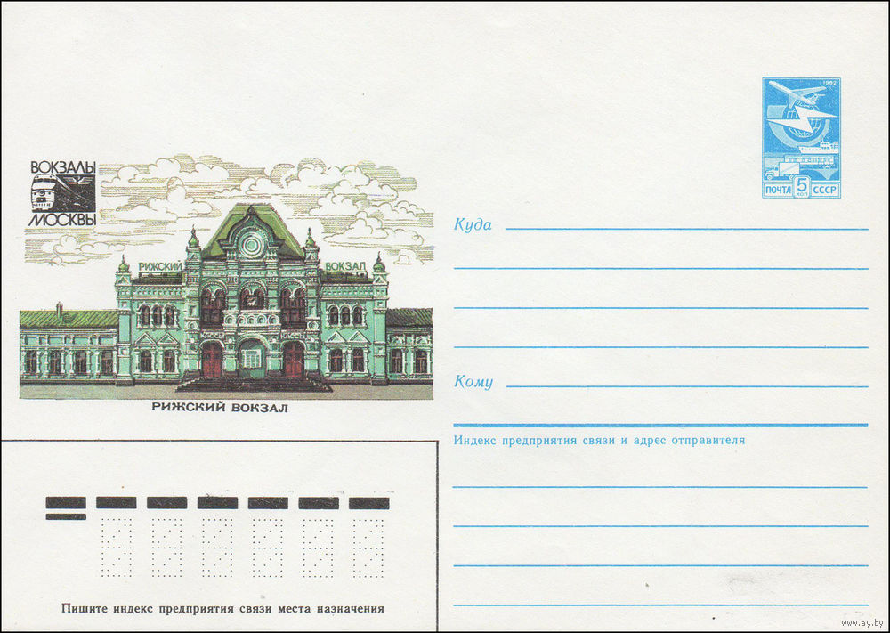 Художественный маркированный конверт СССР N 87-383 (23.07.1987) Вокзалы Москвы Рижский вокзал