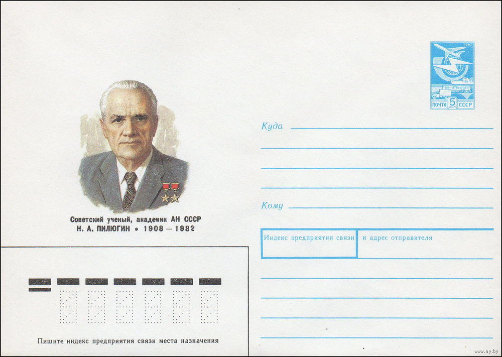 Художественный маркированный конверт СССР N 88-21 (18.01.1988) Советский ученый, академик АН СССР Н. А. Пилюгин 1908-1982