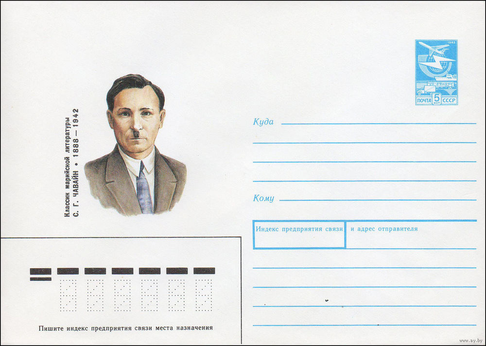 Художественный маркированный конверт СССР N 88-287 (20.05.1988) Классик марийской литературы С. Г. Чавайн 1888-1942