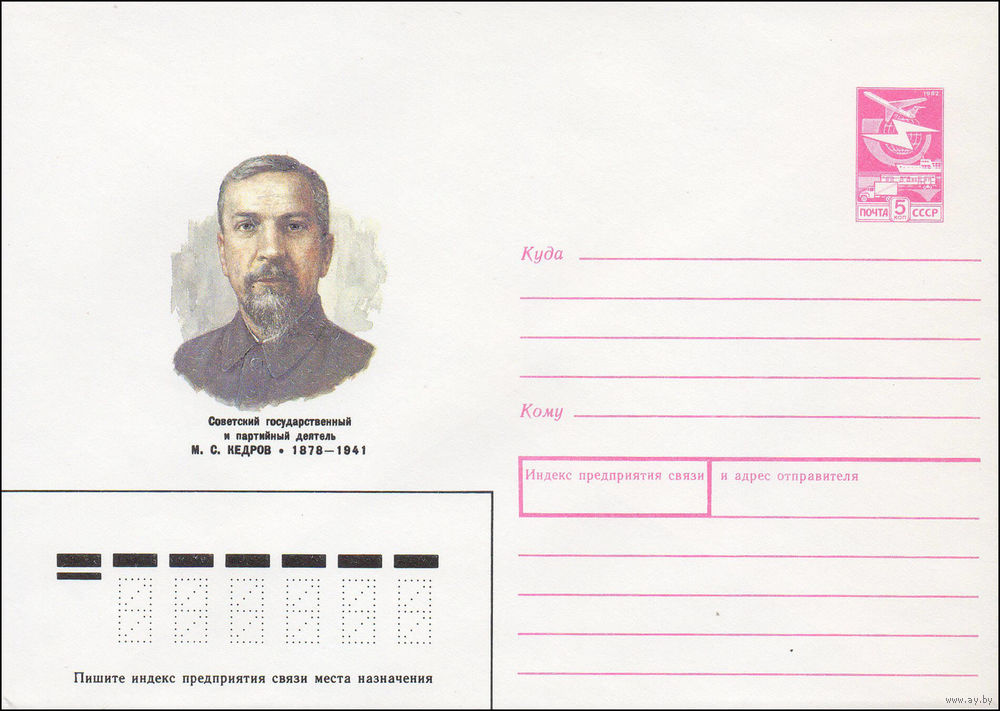 Художественный маркированный конверт СССР N 88-93 (18.02.1988) Советский государственный и партийный деятель М. С. Кедров 1878-1941