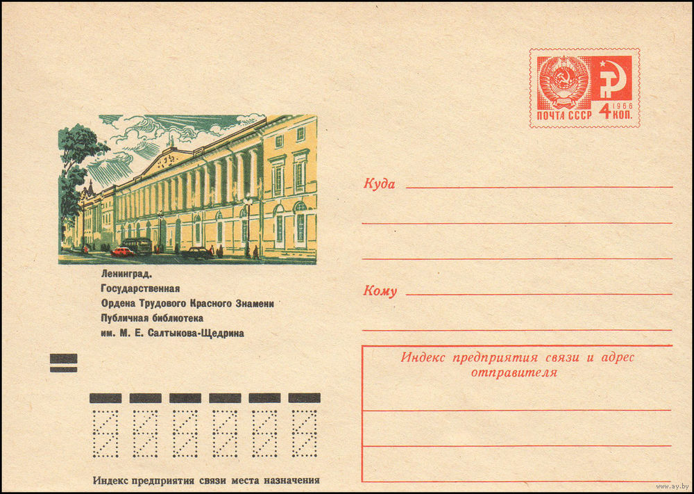 Художественный маркированный конверт СССР N 8853 (12.04.1973) Ленинград. Государственная Ордена Трудового Красного Знамени Публичная библиотека им. М.Е. Салтыкова-Щедрина