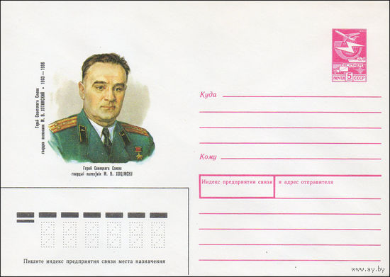 Художественный маркированный конверт СССР N 89-193 (19.04.1989) Герой Советского Союза гвардии полковник М. В. Хотимский 1903-1986