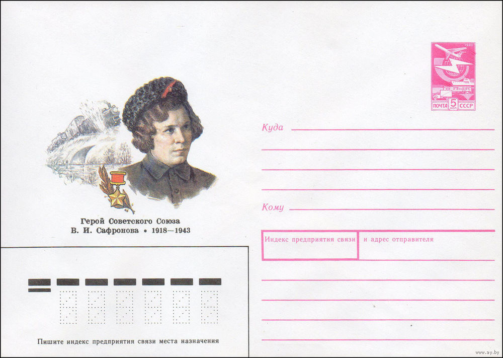 Художественный маркированный конверт СССР N 89-367 (10.10.1989) Герой Советского Союза В. И. Сафронова 1918-1943