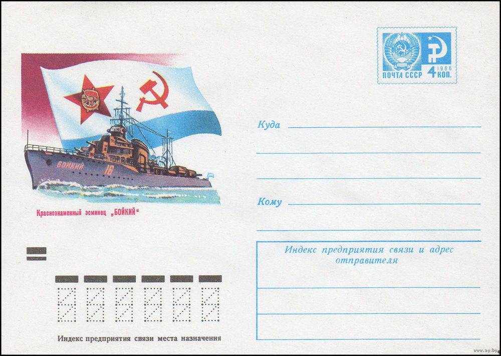 Художественный маркированный конверт СССР N 8912 (08.05.1973) Краснознаменный эсминец "Бойкий"