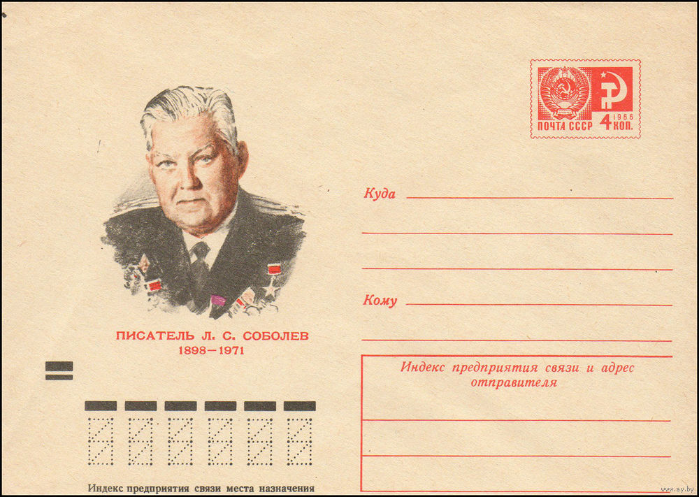 Художественный маркированный конверт СССР N 8918 (15.05.1973) Писатель Л.С. Соболев 1898-1971