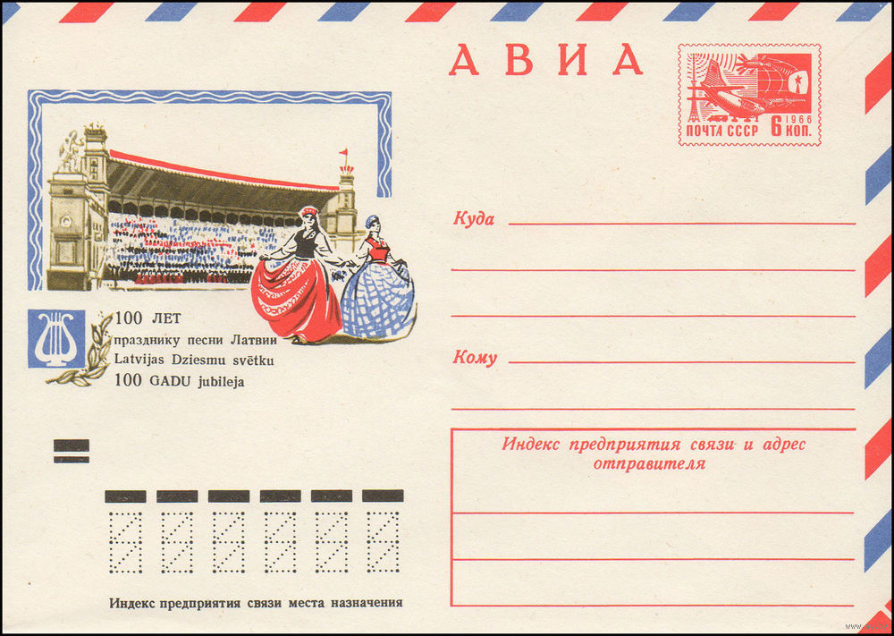Художественный маркированный конверт СССР N 8946 (05.06.1973) АВИА 100 лет празднику песни Латвии