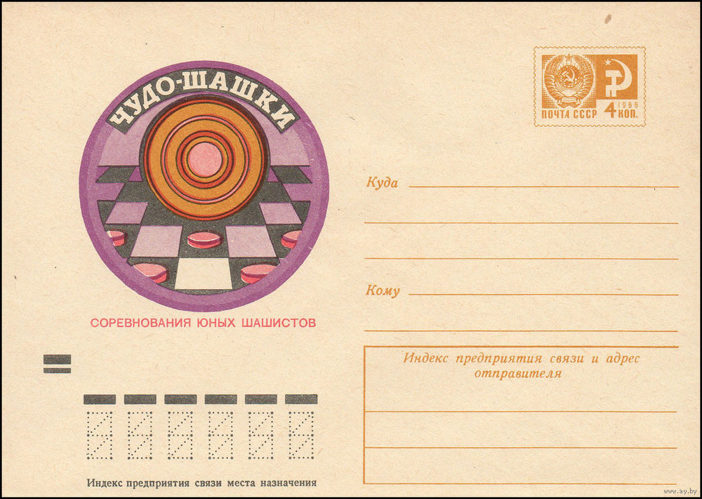 Художественный маркированный конверт СССР N 8981 (18.06.1973) Чудо-шашки Соревнования юных шашистов