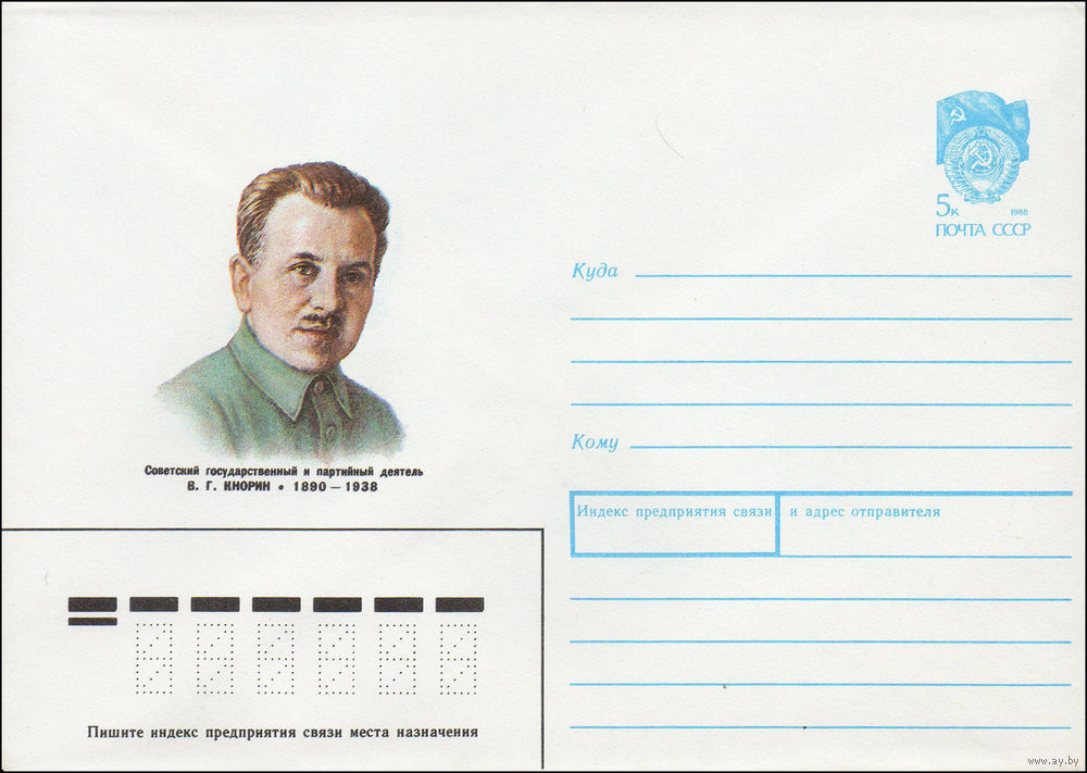 Художественный маркированный конверт СССР N 90-167 (12.04.1990) Советский государственный и партийный деятель В. Г. Кнорин 1890-1938