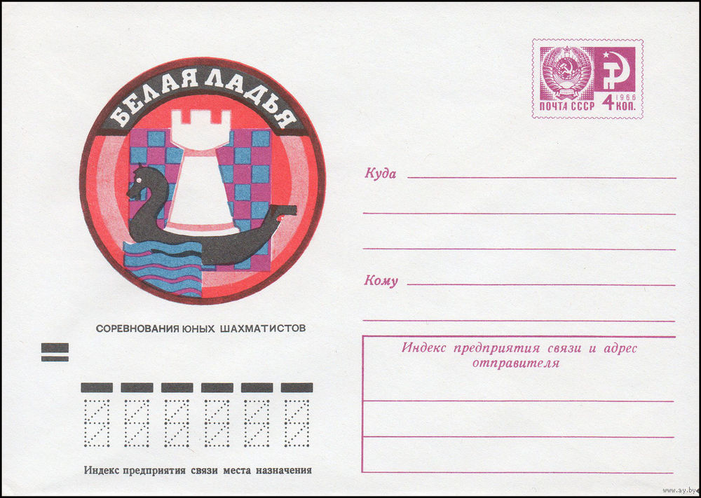 Художественный маркированный конверт СССР N 9005 (02.07.1973) Белая ладья Соревнования юных шахматистов