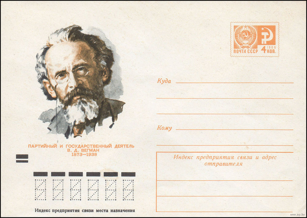 Художественный маркированный конверт СССР N 9012 (04.07.1973) Партийный и государственный деятель В.Д. Вегман 1873-1938
