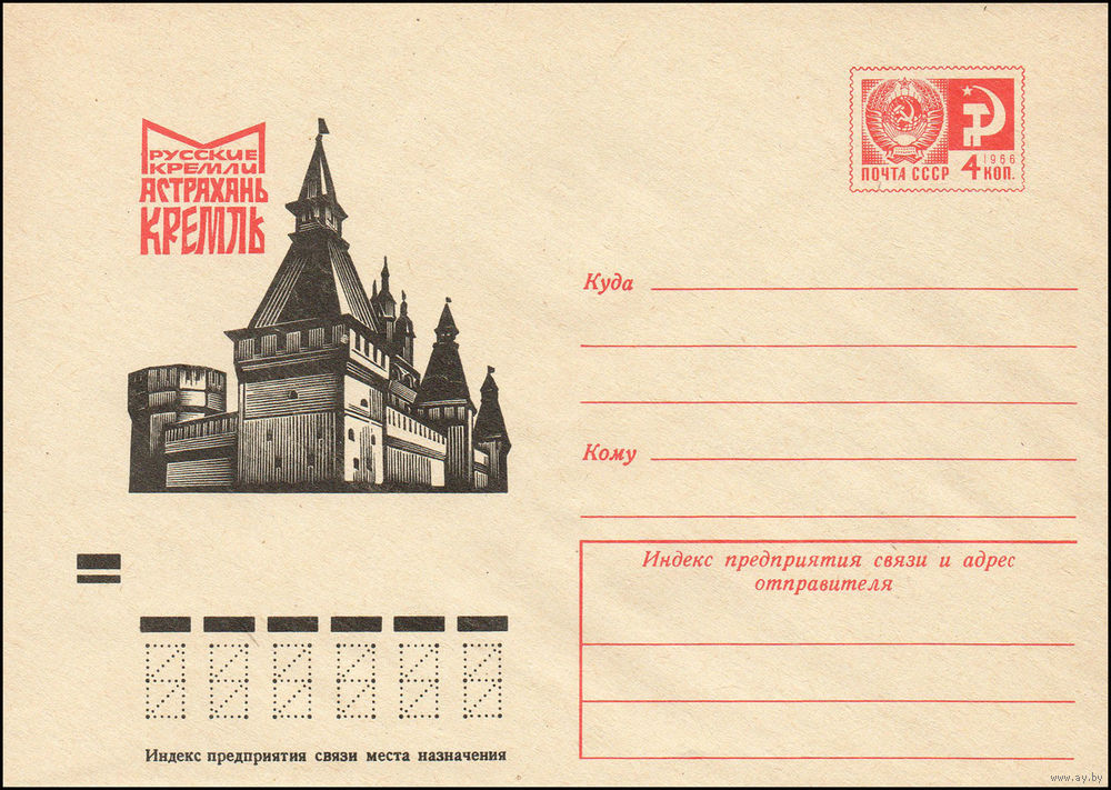Художественный маркированный конверт СССР N 9136 (21.08.1973) Русские кремли Астрахань Кремль