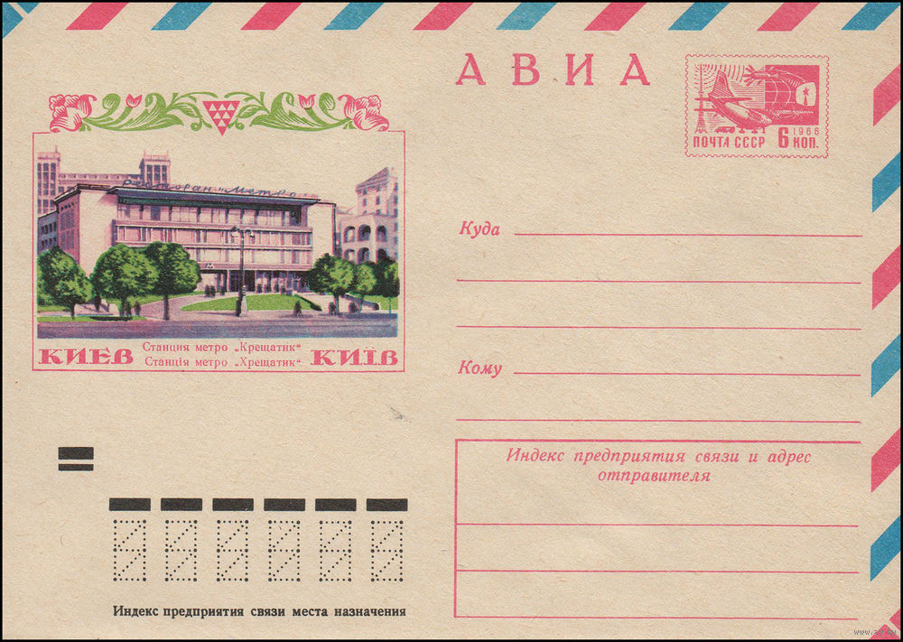 Художественный маркированный конверт СССР N 9186 (10.09.1973) АВИА Киев Станция метро "Крещатик"