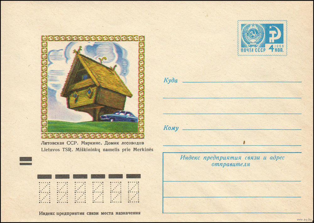 Художественный маркированный конверт СССР N 9200 (14.09.1973) Литовская ССР. Мяркине. Домик лесоводов