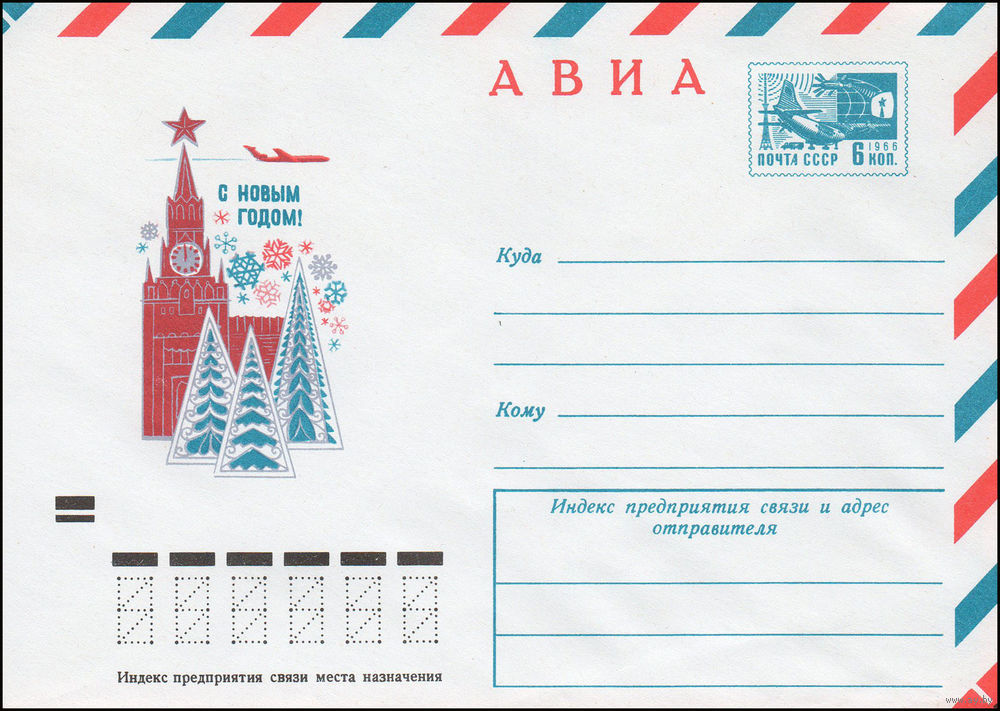 Художественный маркированный конверт СССР N 9230 (28.09.1973) АВИА С Новым годом!