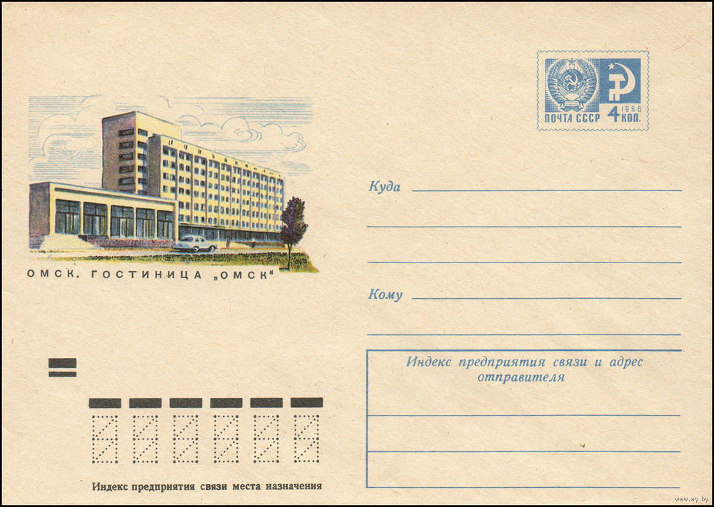 Художественный маркированный конверт СССР N 9296 (21.11.1973) Омск. Гостиница "Омск"