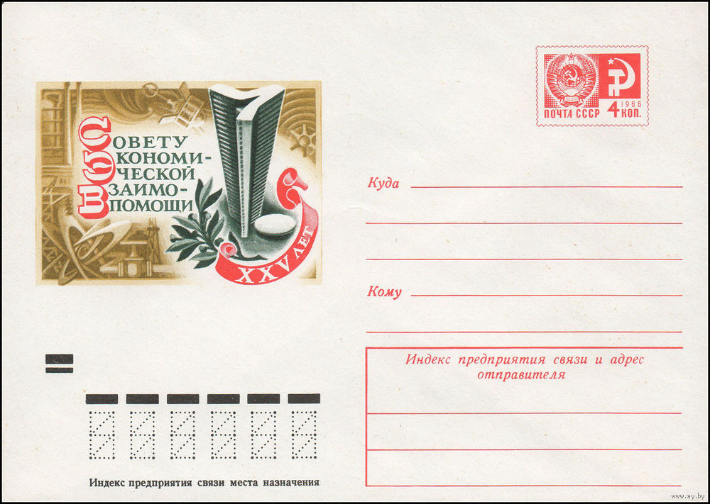 Художественный маркированный конверт СССР N 9318 (04.12.1973) XXV лет Совету Экономической Взаимопомощи