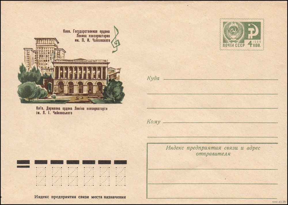 Художественный маркированный конверт СССР N 9617 (05.04.1974) Киев. Государственная ордена Ленина консерватория им. П.И. Чайковского