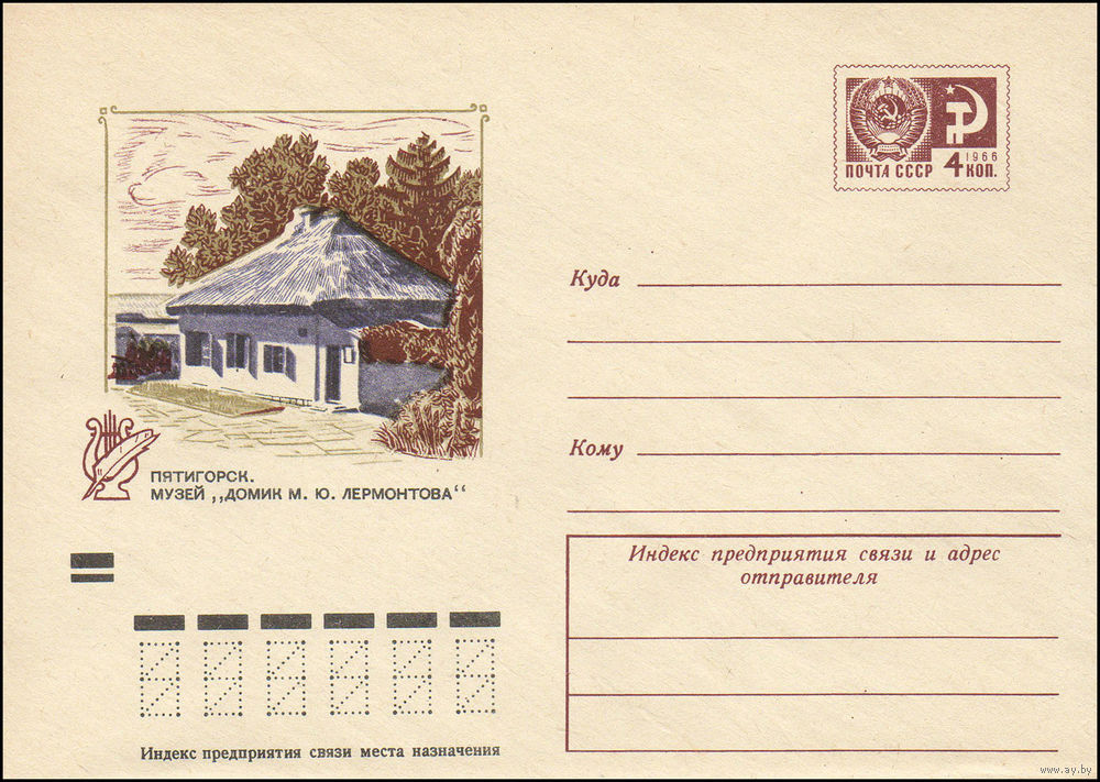 Художественный маркированный конверт СССР N 9624 (05.04.1974) Пятигорск. Музей "Домик М.Ю. Лермонтова"