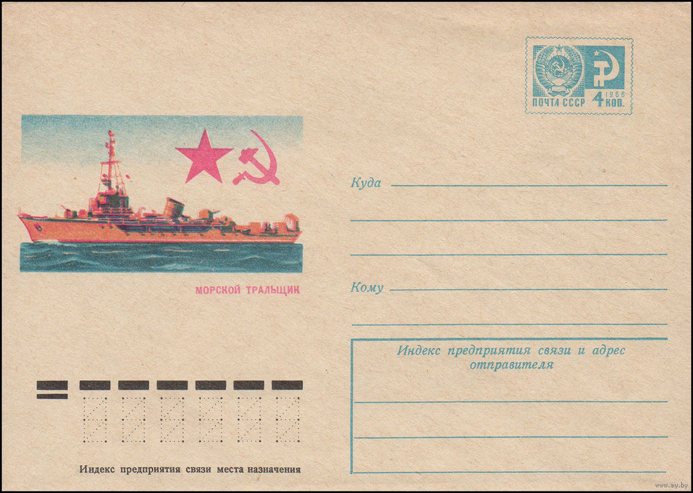 Художественный маркированный конверт СССР N 9675 (05.05.1974) Морской тральщик