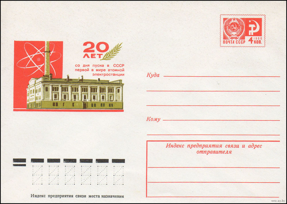 Художественный маркированный конверт СССР N 9749 (03.06.1974) 20 лет со дня пуска в СССР первой в мире атомной электростанции