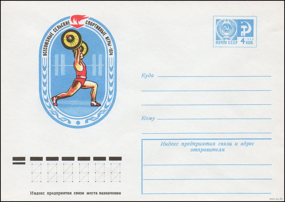 ![Художественный маркированный конверт СССР N 9754 (03.06.1974) Всесоюзные сельские спортивные игры 1974 [Тяжелая атлетика]](https://s5-lot.aystatic.by/550x510/298/625/5040/5040625298_0.jpg)